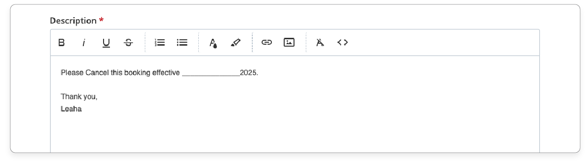 6. Write a description similar to the one below by proving details such as the cancellation date.