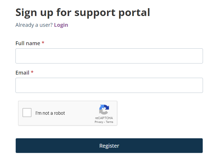 Click here and enter your Full name and email address, tick the "I'm not a robot" box, and click on "Register".