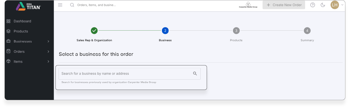 2. Click Create New Order