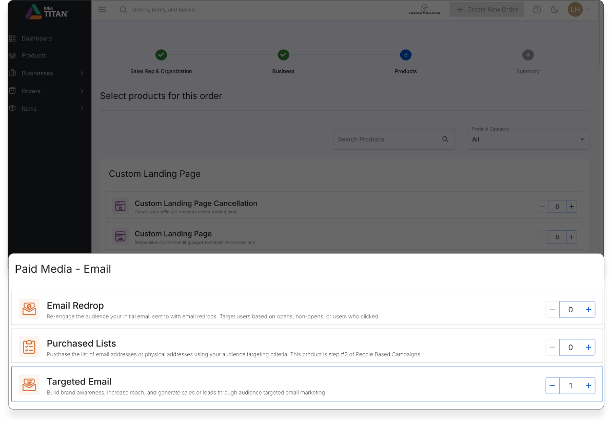 4. You will then be directed to a products page scroll down to Paid Media - Email,find Targeted Email.