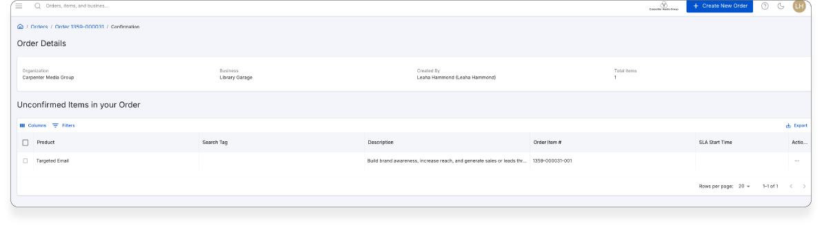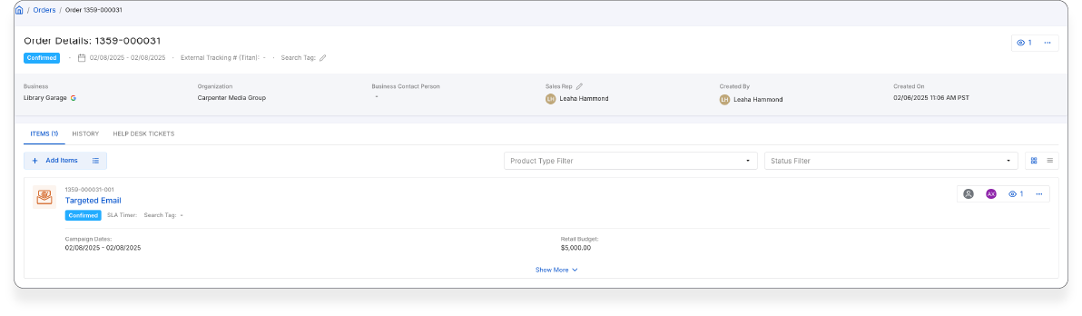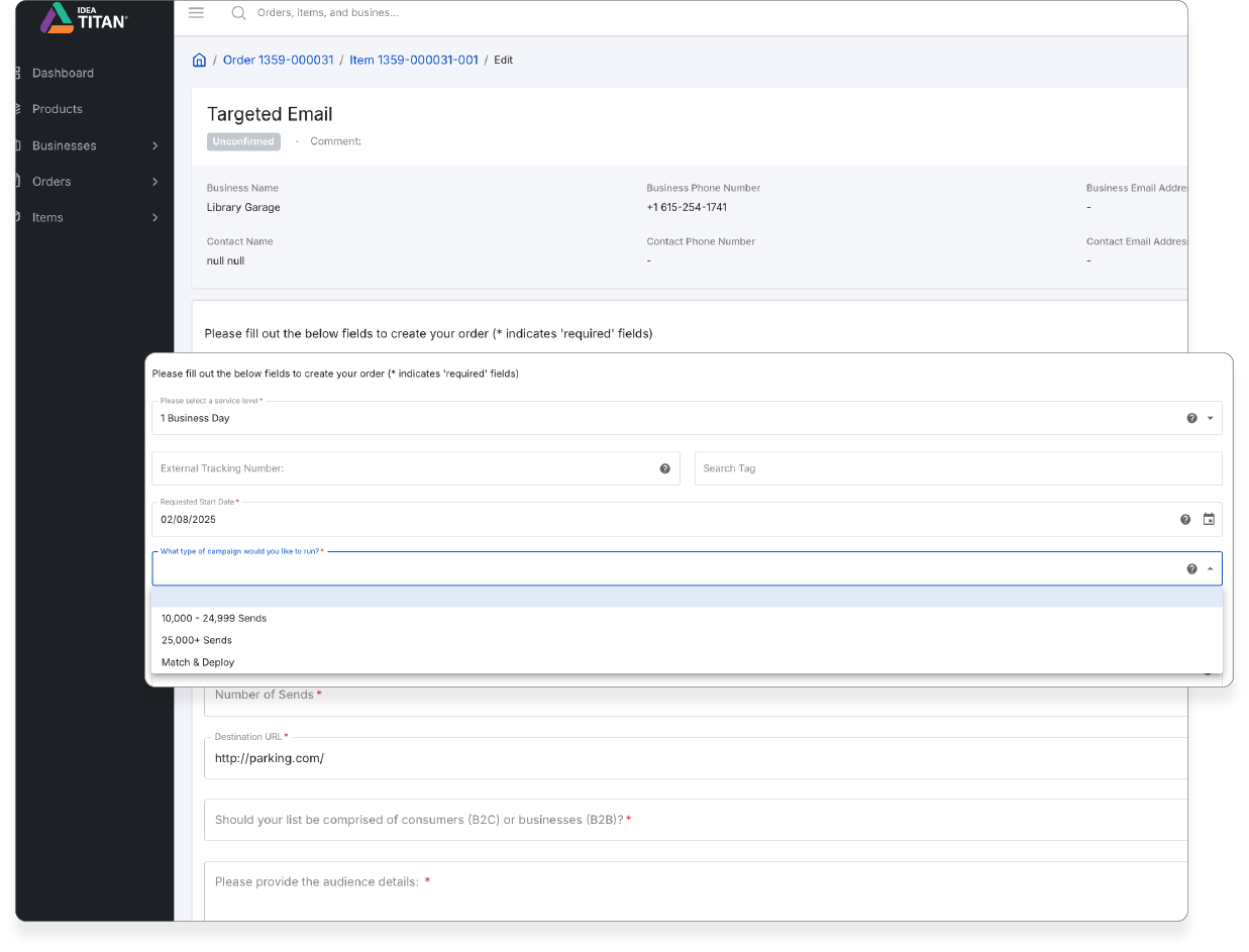 6. Click Create Order. You will be directed to the Target Email Order Summary. Fill in all the details especially all the input fields that indicate (*).